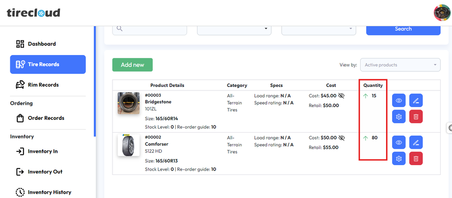 As you can see in the picture below the tire record is the quantity or the stock of the product this guide will help you update your stock or remove a stock quantity in your Inventory.