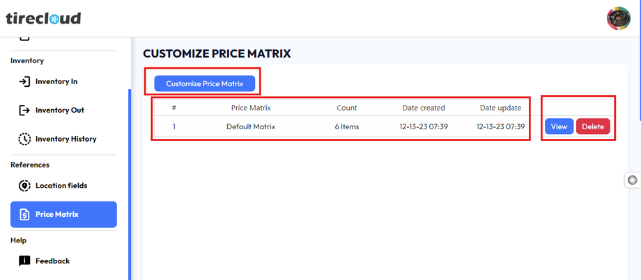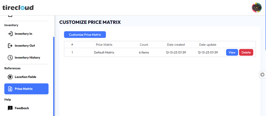 Price Matrix allows Tire Cloud to establish different price points for tires and rims depending on predefined criteria.