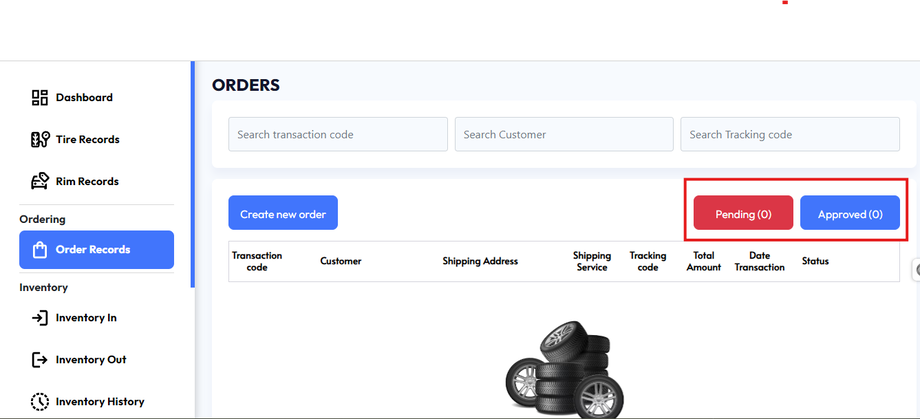 Pending (0): Shows orders that are not yet processed or approved. The number in parentheses indicates how many orders are currently pending.