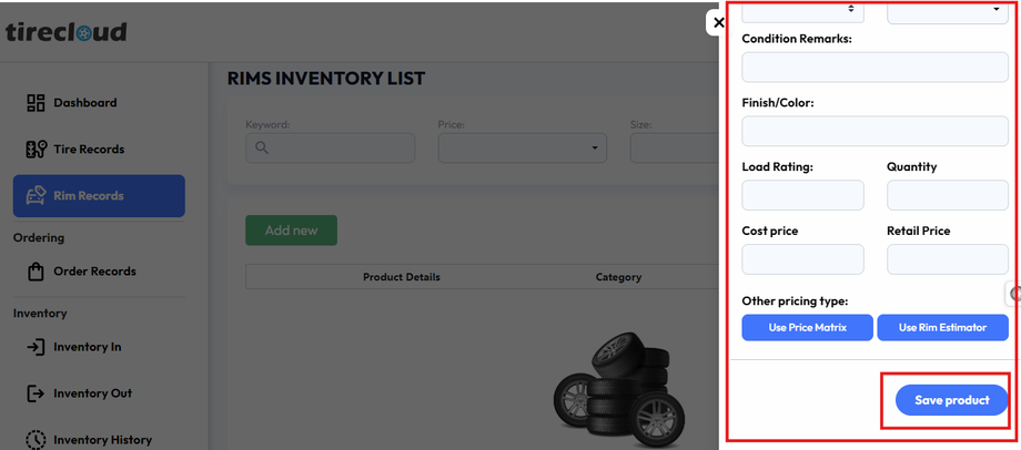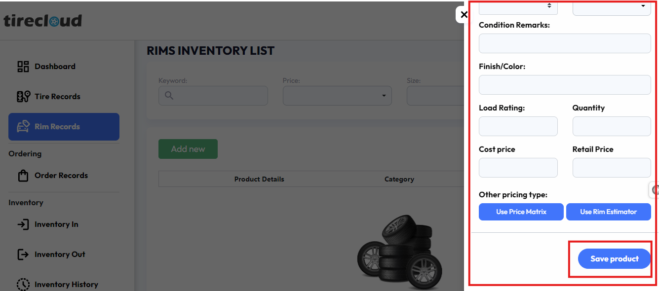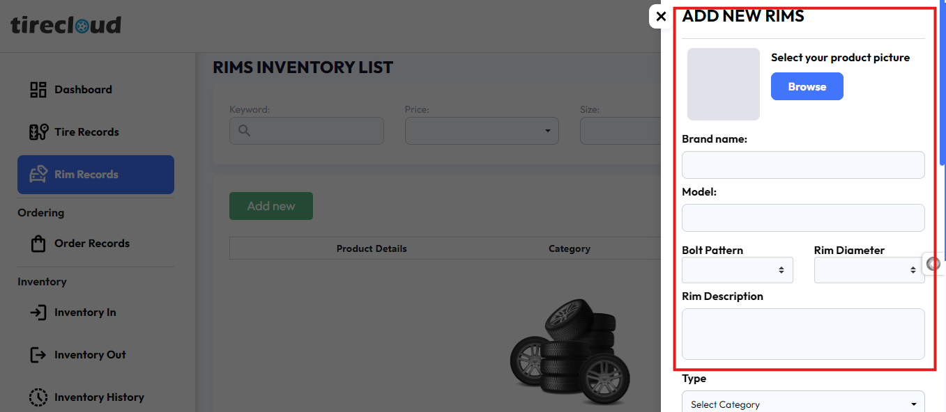 This process ensures you have all the essential details about each rim product, making inventory management smoother and more efficient.